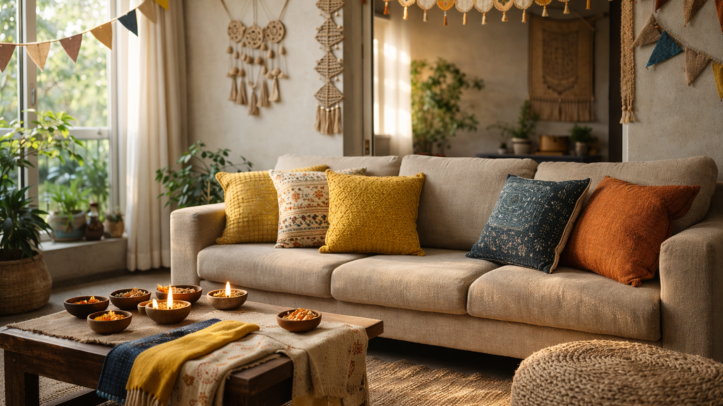 Decorative elements transform homes into festive spaces during Diwali. However, synthetic decorations, plastic banners, polyester torans, vinyl rangoli stickers, create substantial waste. Jute and cotton décor provides biodegradable alternatives featuring traditional motifs while supporting sustainable agriculture and textile craftsmanship.