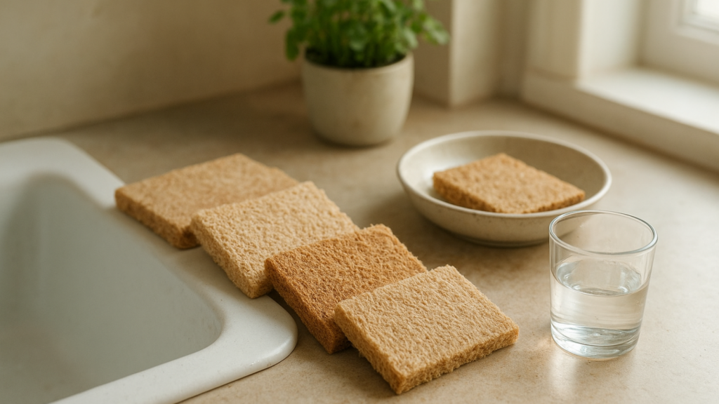 Synthetic kitchen sponges shed microplastics while resisting decomposition in landfills. Compostable sponges manufactured from plant cellulose, coconut fibres, or natural loofah provide effective scrubbing power while breaking down completely after disposal, eliminating microplastic pollution from dishwashing routines.