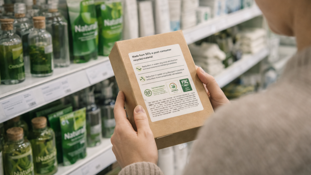 Examine product labels, packaging, and company websites for concrete information. Strong sustainability claims specify: