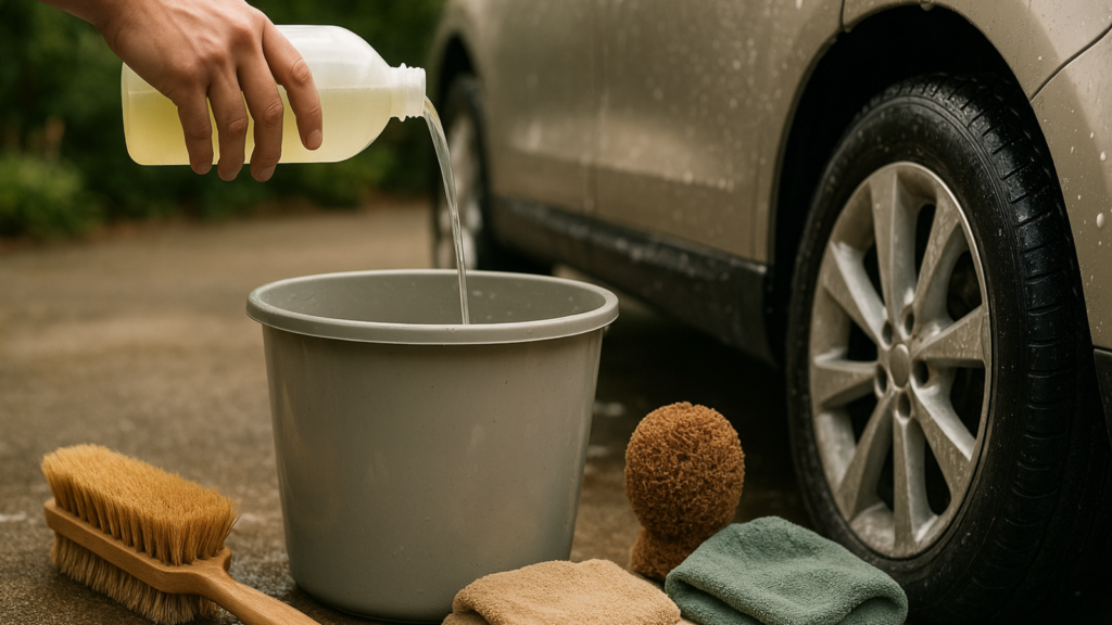 Product Examples: Simple Green Car Wash, Eco Touch Waterless Car Wash, Chemical Guys EcoSmart, Dr. Bronner’s Sal Suds (diluted), Seventh Generation Car Wash.