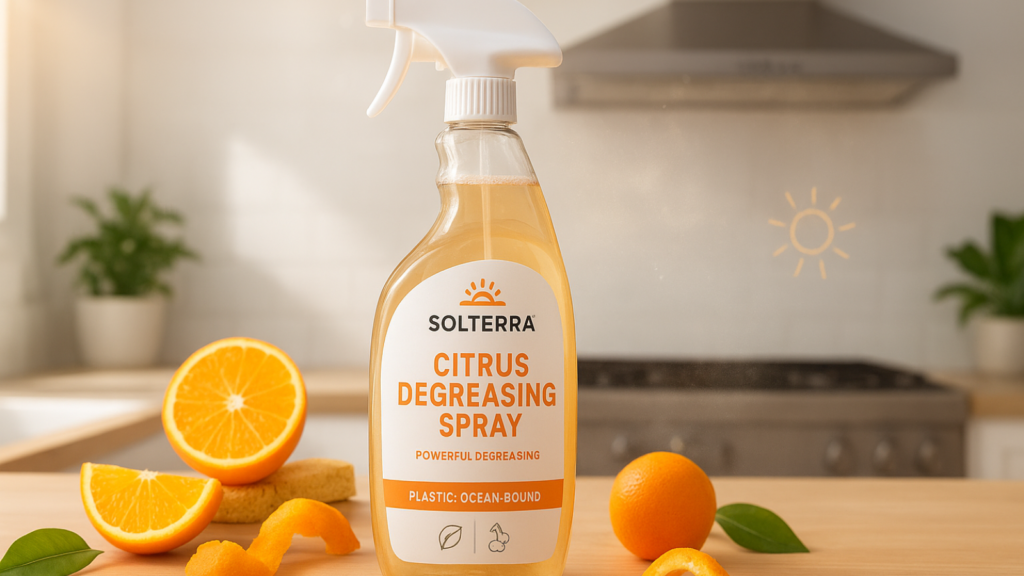 Eco Features: Harnessing d-limonene, naturally extracted from citrus peels, typically waste products from juice production—Solterra transforms byproducts into powerful degreasers. Bottles contain ocean-bound plastic reclaimed from coastal areas before entering waterways. Manufacturing uses solar-powered facilities, and all ingredients biodegrade completely within three weeks. Cruelty-free certification and palm oil-free formulation demonstrate careful ethical consideration.
