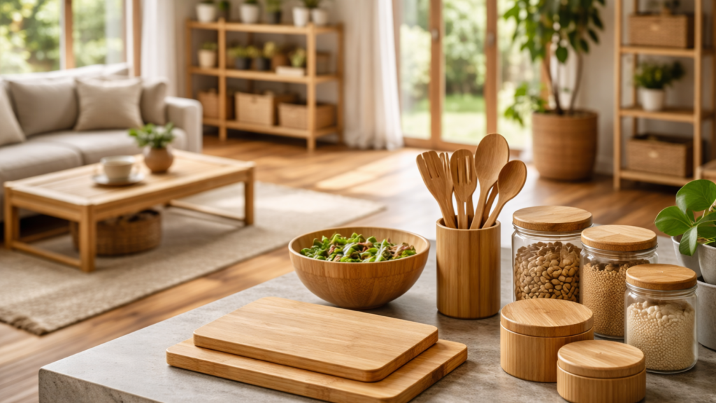 Bamboo kitchenware eco-friendly credentials stem from multiple factors. Bamboo cutting board sustainable benefits include 3 key attributes (natural antibacterial properties, dense grain resisting knife scarring, and biodegradability at end of life). Plastic cutting surfaces release microplastics into food. Bamboo provides safe, hygienic food preparation surfaces.